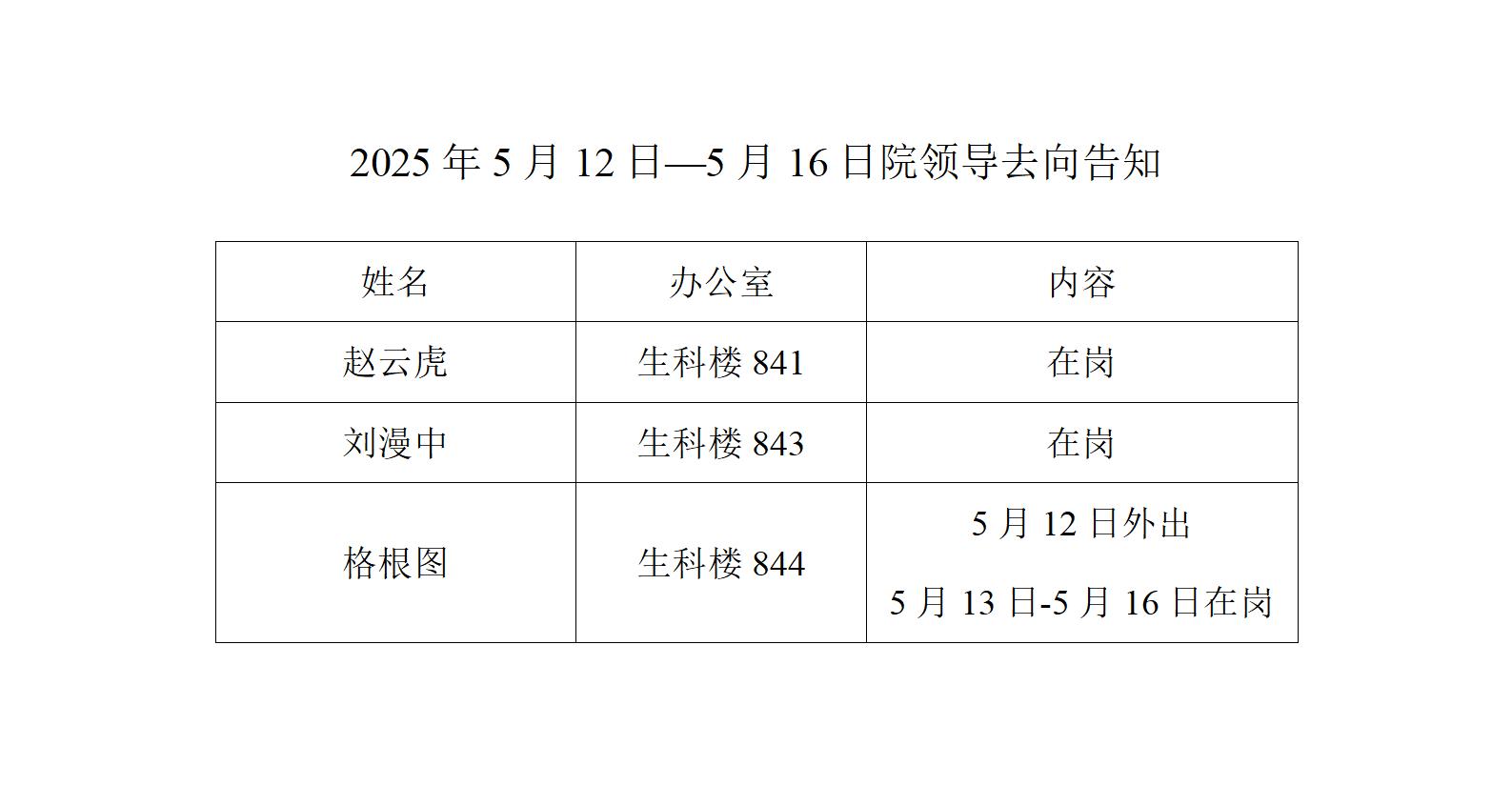 2025年5月12日-5月16日院领导去向告知